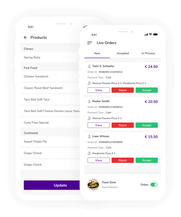 After an admin approves your store request, you will get a real-time order request. You have an option to accept or decline the order request. Also, you can manage restaurant details with some few click.
